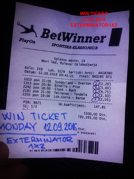 WIN TICKET FROM YESTERDAY THURSDAY/ CETVRTAK 31.10.2019